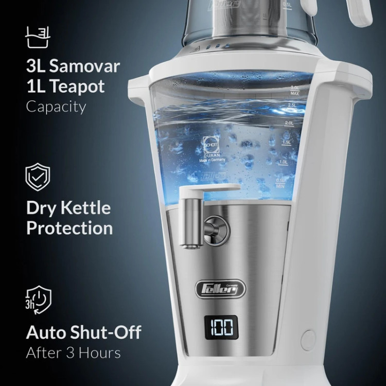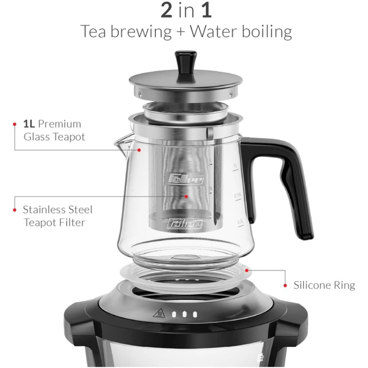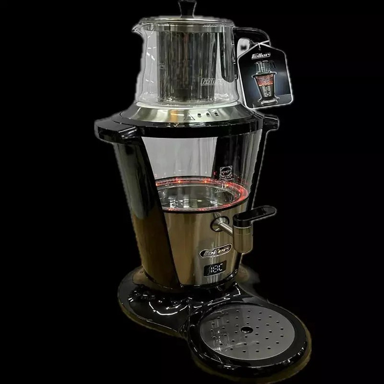 چای ساز سماوری فلر مدل 390 با توان 2000 واتی که دارد کمک میکند برای خانواده و یا پذیرایی از مهمانهایتان خیلی سریع چای تازه دم آماده کنید. طراحی این دستگاه به شکل روهمی است که در دم کشیدن بهتر چای بسیار تاثیرگذار است و قابلیت قطع شدن خودکار آن و بخصوص ضد چکه بودن شیر آن از آسیبهای احتمالی، زمان استفاده از دستگاه جلوگیری میکند. در ادامه توضیحات کاملی درمورد ویژگیها، مزیتها و تاثیرات ارزشمند این مدل چای ساز فلر ارائه میدهیم. توان مصرفی دستگاه 2000 وات است که شما را در آماده کردن انواع چای و دمنوش در زمانی کوتاه ممکن کمک میکند. ظرفیت 3 لیتری کتری و 1 لیتری قوری در یک بار استفاده، برای پذیرایی از 15 نفر بصورت همزمـان کافی و مناسب است. جنس محفظه آب کتری و قوری از شیشه مقاوم در برابر حرارت است و نگرانی شما از آسیب دیدن آنها را برطرف میکند. جنس بدنه کتری از استیل ضد زنگ است که کیفیت فوق العاده بالایی دارد و در تماس با آب به هیچ عنوان زنگ نمیزند. قابلیت قطع شدن خودکار بعد از رسیدن به دمای جوش که از بخار شدن بیش از حـد و کـم شدن آب جلوگیری میکند. شیر سماوری این مدل چای ساز فلر بصورت کاملا اصولی طراحی شده که قابلیت ضدچکه دارد و ایمنی فوع العادهای دارد. قابلیت گرم نگهدارنده خودکار و قابلیت چرخش 360 درجه دارد که استفاده از دستگاه را خیلی ساده و راحت تر میکند. قابلیت جداسازی راحت و شستشوی قطعاتی مانند فیلتر که کار شما را برای تمیز کردن آن بعد استفاده خیلی آسان میکند. اکثر لوازم های خانگی جدید با هدف سریعتر کردن انجام کارها و درعین حال حفظ کیفیت، به بازار عرضه میشوند که این مدل چای ساز نیز از این قاعده مستثنی نیست. با این چای ساز سماوری میتوانید در کمتر از 5 دقیقه یک چای دم کشیده و خوش طعم (بخاطر روهمی بودن آن) برای خود و اعضای خانوادهتان درست کنید. توصیه ما این است که با بررسی دقیق توضیحات و مشخصات خرید و قیمت چای ساز فلر مدل 390 با آگاهی کامل نسبت به تهیه آن اقدام کنید. و یا میتوانید در صفحه دسته بندی نوشیدنی ساز ، انواع مدلها را مشاهده، مقایسه، بررسی کنید و درنهایت بهترین انتخاب را انجام دهید
