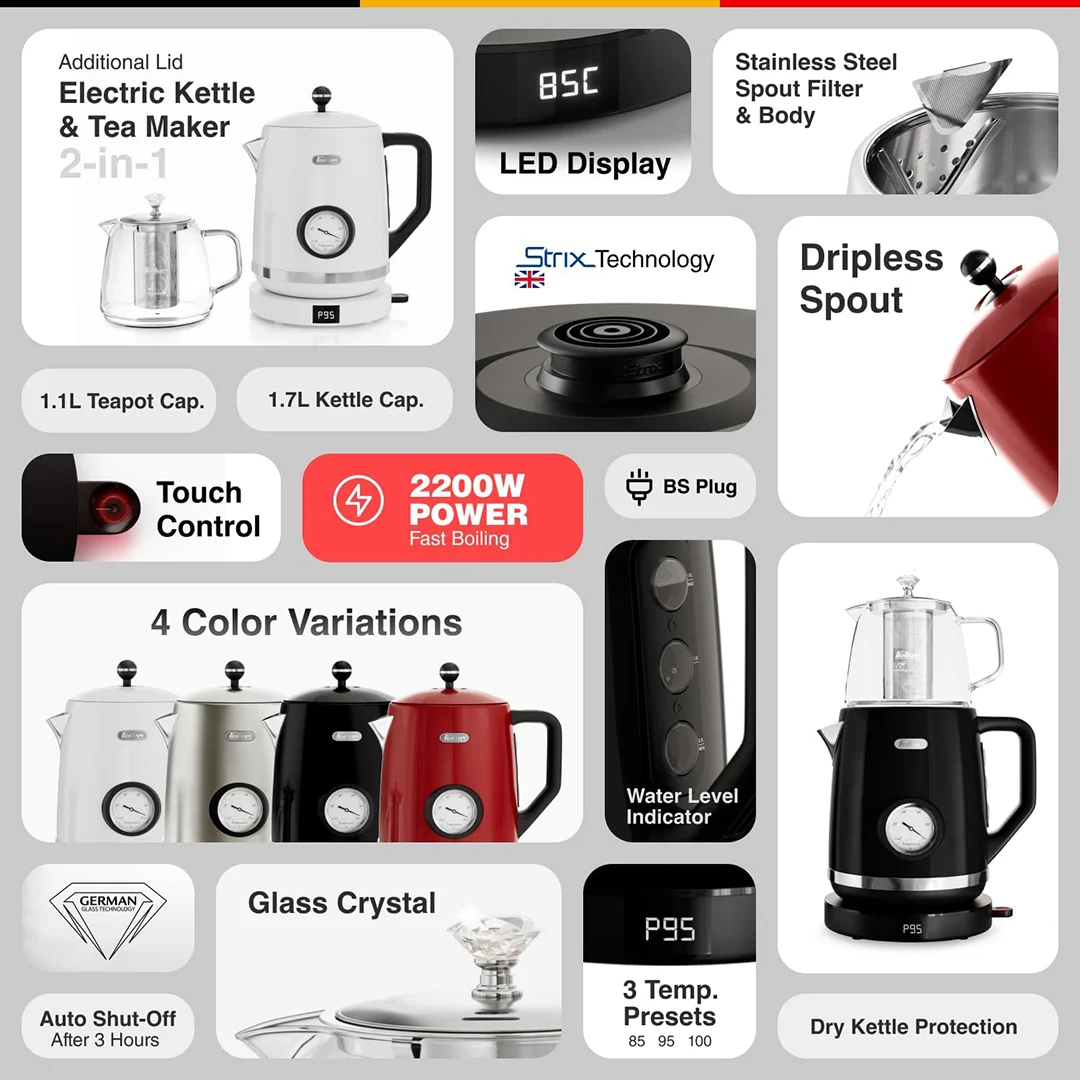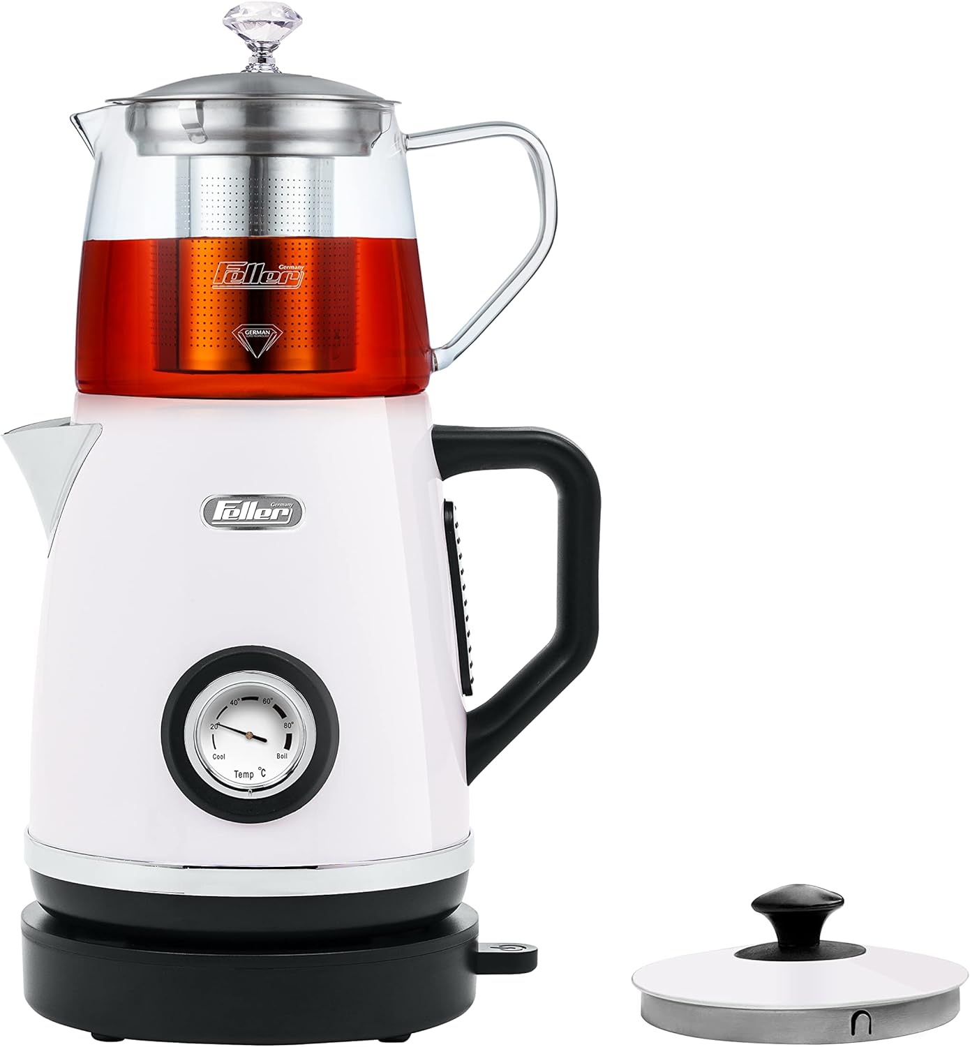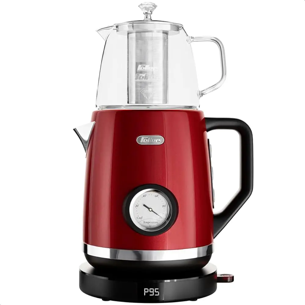 چای ساز فلر مدل TS290 با توان 2200 واتی که دارد کمک میکند برای خانواده و یا پذیرایی از مهمانهایتان خیلی سریع چای تازه و دمنوش آماده کنید. طراحی این دستگاه به شکل روهمی است که در دم کشیدن بهتر چای تاثیرگذاری بالایی دارد. و قابلیت خاموش شدن خودکار آن از آسیبهای احتمالی، زمان استفاده از دستگاه جلوگیری میکند. در ادامه توضیحات کاملی درمورد ویژگیها، مزیتها و تاثیرات ارزشمند این مدل چای ساز فلر ارائه میدهیم توان مصرفی این دستگاه 2200 وات است که در کوتـاه ترین زمان ممکن انواع چای و دمنوش های تازه دم را آماده میکنید. ظرفیت 1.7 لیتری کتری و 1.1 لیتری قوری در یک بار استفاده، برای پذیرایی از 10 نفر بصورت همزمان کافی و مناسب است. جنس مـحفظهی قـوری این چای ساز از شیشـه مـقـاوم در برابر حرارت است و نگرانی شما از آسیب دیدن آن را برطرف میکند. جنس بدنه کتری از استیل ضد زنگ است و روی آن نشانگر میزان آب قرار دارد که شما را از میزان آب داخل آن مطلع میکند. قابلیت گرم نگهدارنده خودکار آن و قابلیت چرخش 360 درجه دارد که استفاده از دستگاه را خیلی سـاده و راحت تر میکند. قابلیت جداسازی راحت آن و شستشـوی قطعاتی مانند فیلتـر که کار شما را بـرای تمیـز کردن چای ساز خیلی آسـان میکند. اکثر لوازم های خانگی جدید با هدف سریعتر کردن انجام کارها و درعین حال حفظ کیفیت، به بازار عرضه میشوند. که این مدل چای ساز نیز از این قاعده مستثنی نیست. اگر دوست دارید در کمتر از 5 دقیقه یک چای دم کشیده و خوش طعم (بخاطر روهمی بودن آن) برای خود و اعضای خانوادهتان درست کنید این دستگاه ایده آل است. توصیه ما این است که با بررسی دقیق توضیحات و مشخصات خرید و قیمت چای ساز فلر مدل 290 با آگاهی کامل نسبت به تهیه آن اقدام کنید. و یا میتوانید در صفحه دسته بندی نوشیدنی ساز ، انواع مدلها را مشاهده، مقایسه، بررسی کنید و درنهایت بهترین انتخاب را انجام دهید.
