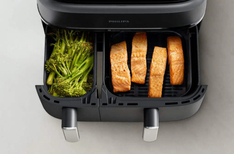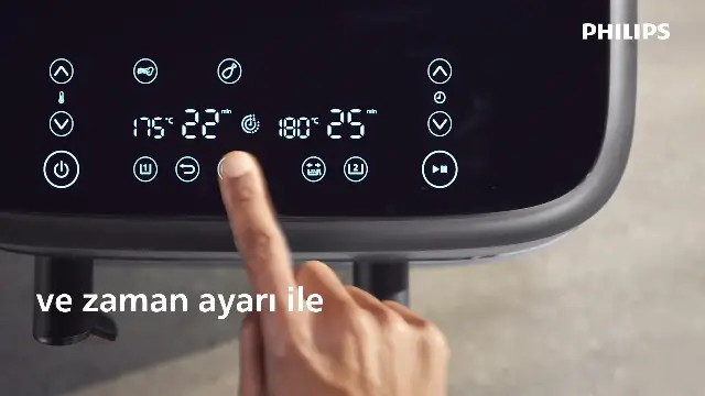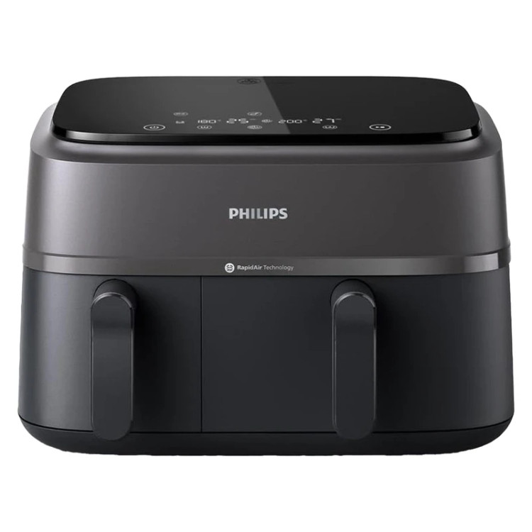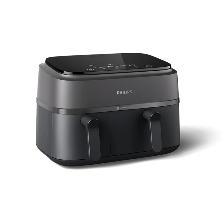 سرخ کن بدون روغن دوقلو مدل NA350 یکی از جدید ترین و متفاوت ترین سرخ کن های بی نظیر فیلیپس بوده که به تازگی تولید و روانه بازار شده است و می تواند راحتی و آسایش را برای پخت انواع غذا های سرخ کردنی به روش کاملاً سالم برای شما امکان پذیر کند. این دستگاه مناسب افرادی بوده که اهمیت زیادی به سبک زندگی سالم می دهند، چرا که می توانید با استفاده از سرخ کن دوقلو فیلیپس انواع غذا ها را بدون قطره ای روغن آماده کنید. سرخ کن بدون روغن فیلیپس مدل NA350 از سری 3000 سرخ کن های برند فیلیپس بوده که با برخورداری از قدرت 2750 وات به راحتی و در کم ترین زمان ممکن انواع غذا های خوش طعمی را برای شما آماده می کند. این سرخ کن دارای دو محفظه مجزا برای آشپزی بوده که این امکان را به شما می دهد تا به سرعت غذا های مختلفی را آماده کنید. همچنین سرخ کن 350 فیلیپس تا 70 درصد در مصرف انرژی صرفه جویی کرده و شما می توانید دو وعده غذایی مختلف را سریع تر از سایر وسیله ها بپزید. سرخ کن بدون روغن دوقلو فیلیپس NA350 دارای دو محفظه غیر هم اندازه با گنجایش های 6 لیتر و 3 لیتر بوده که نشان دهنده ظرفیت بالای دستگاه بوده که معادل 9 لیتر است و می تواند حداکثر 1.5 کیلوگرم غذا را برای شما آماده کند. البته لازم به ذکر است که بدانید کشوی کوچک دستگاه بیشتر مناسب برای سرخ کردن سیب زمینی، بادمجان و طبخ سبزیجات بوده و کشوی بزرگ برای مرغ شکم پر، کیک، ماهی، جوجه و … مناسب تر است. این سرخ کن دارای 8 برنامه از پیش تنظیم شده بوده که با انتخاب هر کدام می توانید دما و زمان مناسب را نیز مشاهده کنید، که به صورت خودکار تنظیم می شود. همچنین می توانید به صورت دستی زمان و دمای پخت را برای غذای های خود انتخاب کنید. کمپانی فیلیپس همیشه از بهترین ها در ساخت محصولات خود استفاده کرده است، و در طراحی محصولاتش همیشه شیک بودن را نیز در نظر می گیرد، به همین دلیل سرخ کن بدون روغن دوقلو NA350 دارای طراحی و ظاهر بسیار چشم گیر و جذابی می باشد. بدنه این دستگاه از جنس استیل و پلاستیک بسیار مقاوم و عایق سرد ساخته شده که با رنگ بسیار شیک مشکی، جلوه خاصی به آشپزخانه شما می بخشد. محفظه ها یا همان سبد های این سرخ کن نیز به شکل مربع و از جنس روکش نچسب ساخته شده اند و فاقد BPA می باشند. همچنین در بالای این دستگاه یک صفحه نمایشگر با دکمه های لمسی تعبیه شده که با استفاده از آن ها می توانید به راحتی تنظیمات مرتبط با پخت را انجام دهید.